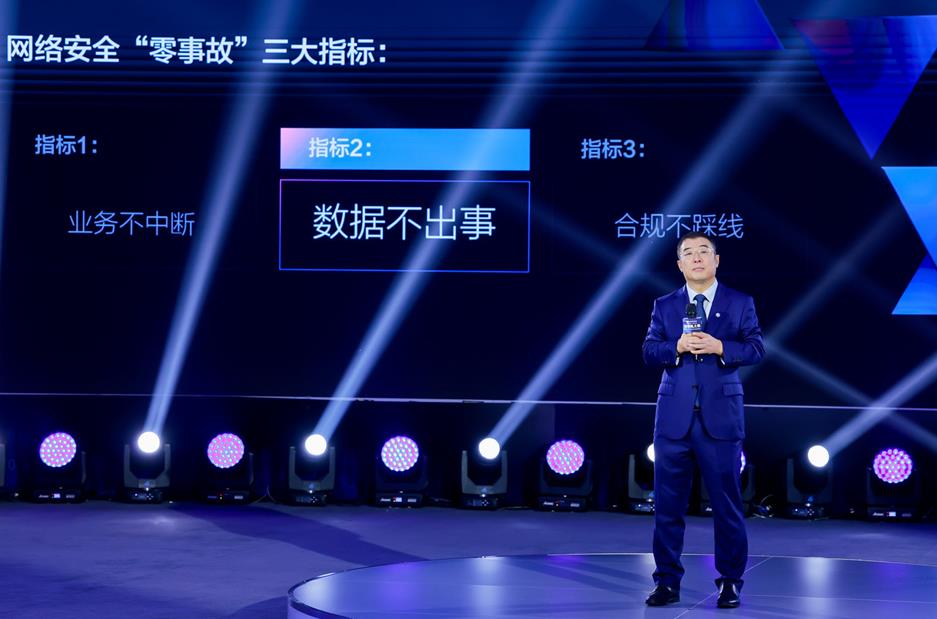 “確保數據不出事”——是實現網絡安全“零事故”的標準之一。“零事故”不是零攻破,齊向東分享了零事故的三條標準:業務不中斷、數據不出事以及合規不踩線。當個別的終端、服務器或者其他的網絡資產被破壞,只要能快速採取措施,比如隔離、停機等,最後沒有影響到辦公和對內對外的業務,保障數據整體安全可控。