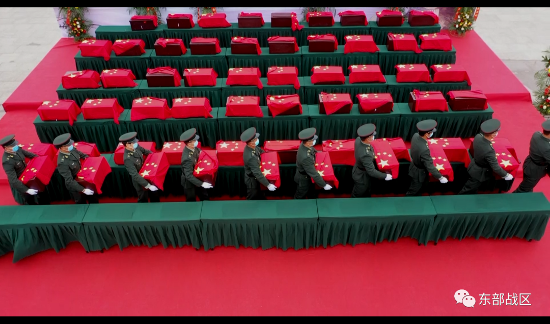 隨後,禮儀民兵將59名烈士的遺骸送至墓穴,由殯葬服務人員在墓入口接骨灰盒完成安葬,參加儀式人員依次向烈士敬獻鮮花,奏《獻花曲》,告慰先烈,寄託哀思。