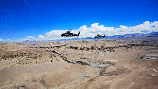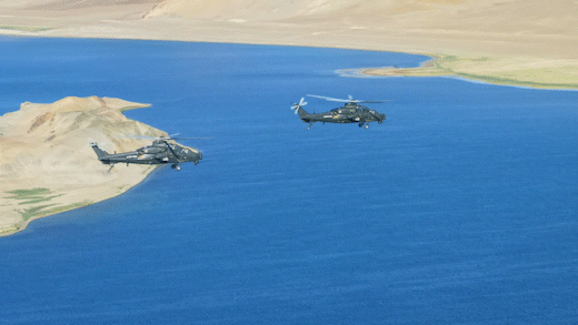 機組順利升空,通道隱蔽突防、超低空雷達規避、極限航時等課目隨機展開,一方面驗證武裝直升機在不同海拔高度的作戰性能,另一方面也是為了探索磨合武裝直升機與運輸直升機在高原通道的協同作戰能力。