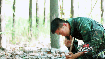 戰士奔跑800米後,用工兵鍬挖坑,