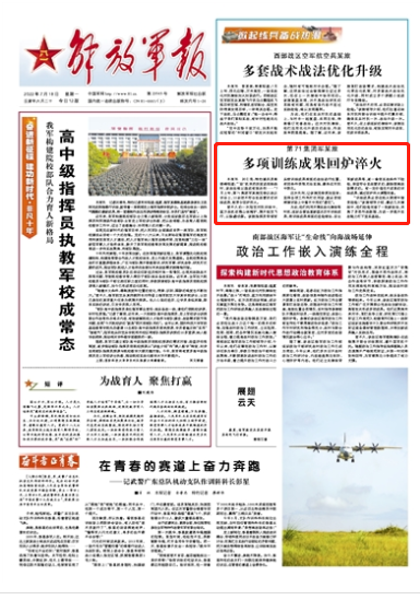解放軍報訊 劉仁浩、特約通訊員高駿峯報道:“‘敵’機突然改變進攻路線時,該戰法難以造成有效殺傷……”7月上旬,第71集團軍某旅黨委議戰議訓會上,10餘項不符合實戰要求的訓練成果,被責令回爐淬火。
