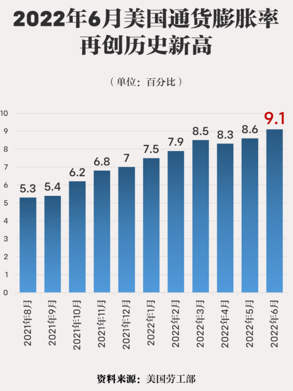 美國經濟要去看病,先得掛個發熱門診。美國消費價格指數(CPI)2022年3月至5月均超8%,6月更升至9.1%,創41年來新高,財長耶倫直言“不可接受”。