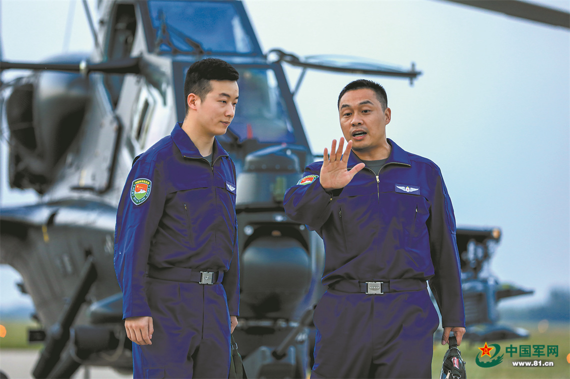 一個波次訓練結束後,機長為年輕飛行員講解戰術動作。