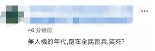 也有人諷刺,“無人機的年代,還在全民皆兵,笑死?”↓