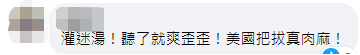 消息傳到島內後,很快引起一些網友的吐槽。有人在臉書留言諷刺,“可憐呀,叫你去交保護費了,自己還在那邊自爽。” ↓
