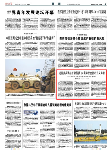 譴責美英澳核擴散行徑 向國際社會發出正義聲音