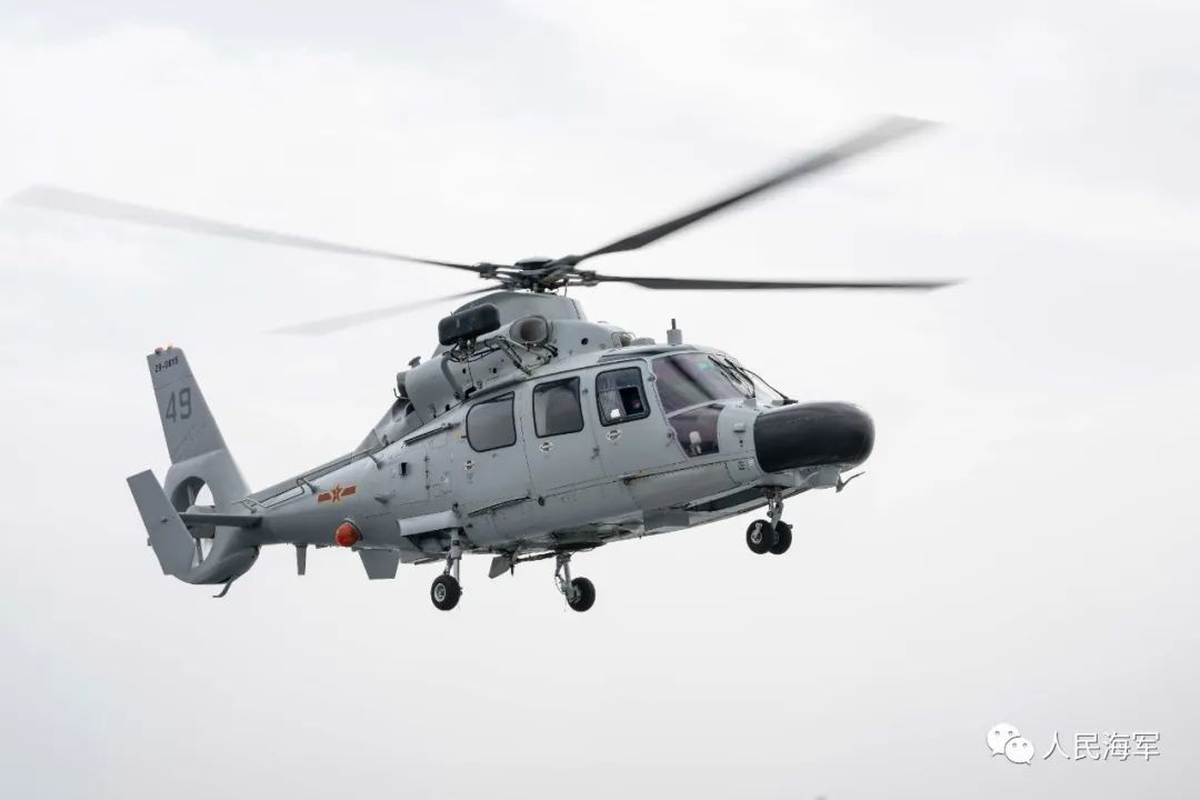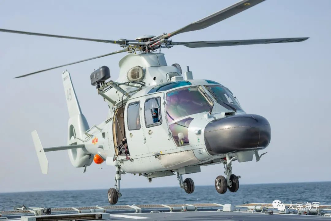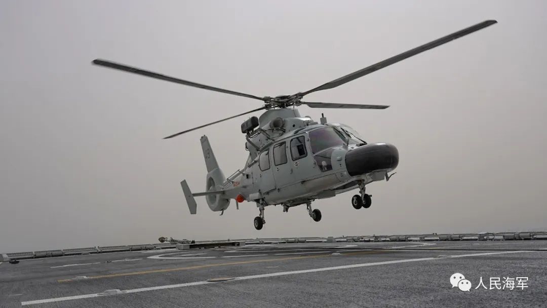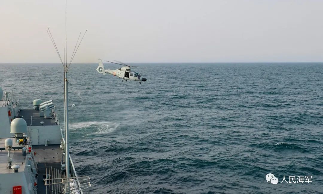 直升機從蘇州艦飛行甲板緩緩升空