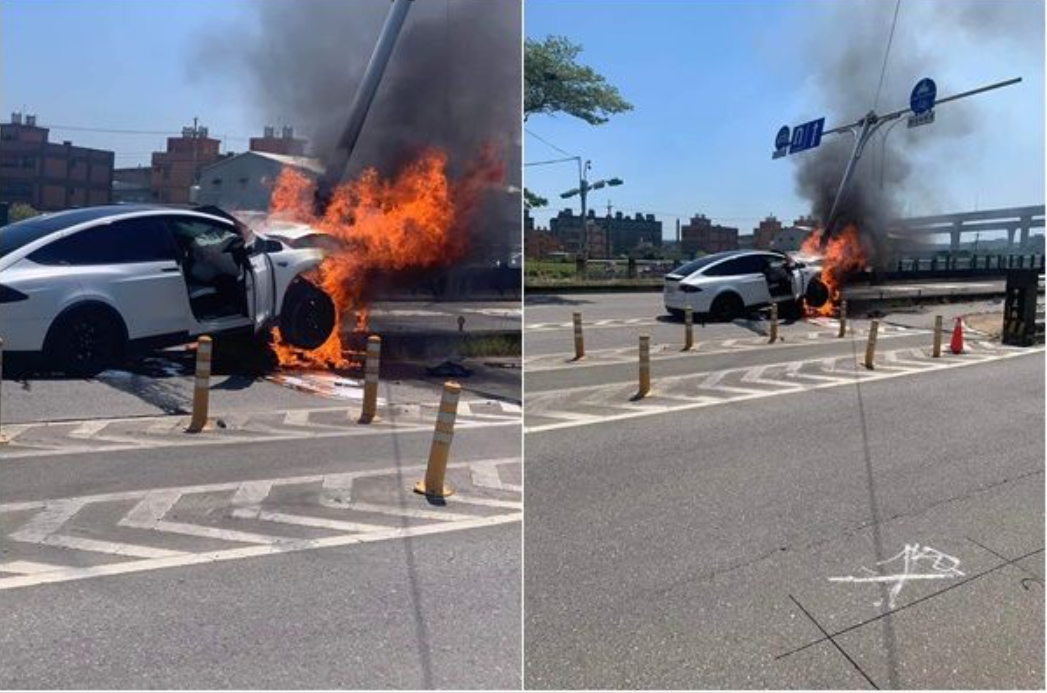 台媒:桃園一輛特斯拉撞上隔離帶起火,警方初步確認傷者是藝人林志穎