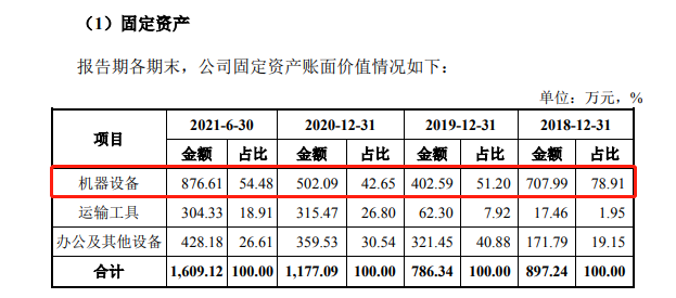 宏石激光是一家輕資產企業。財務數據顯示,截至2021年6月30日,宏石激光固定資產僅1609萬元,其中機器設備僅876萬元。宏石激光稱,公司固定資產金額較小,主要系激光切割設備的核心價值主要體現在整機設計、數控系統設計和激光應用工藝等,公司完成產品設計及原材料採購後,生產環節主要進行裝配及檢測,所需與生產製造相關設備較少。