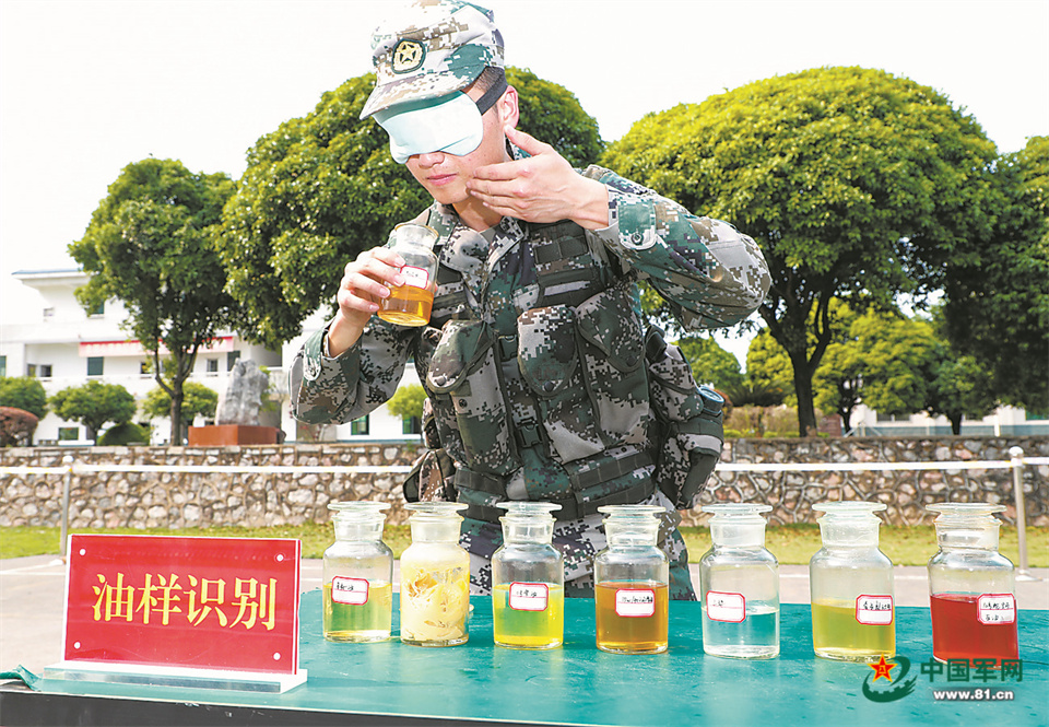 該旅勤務保障營官兵正在進行油樣識別訓練。