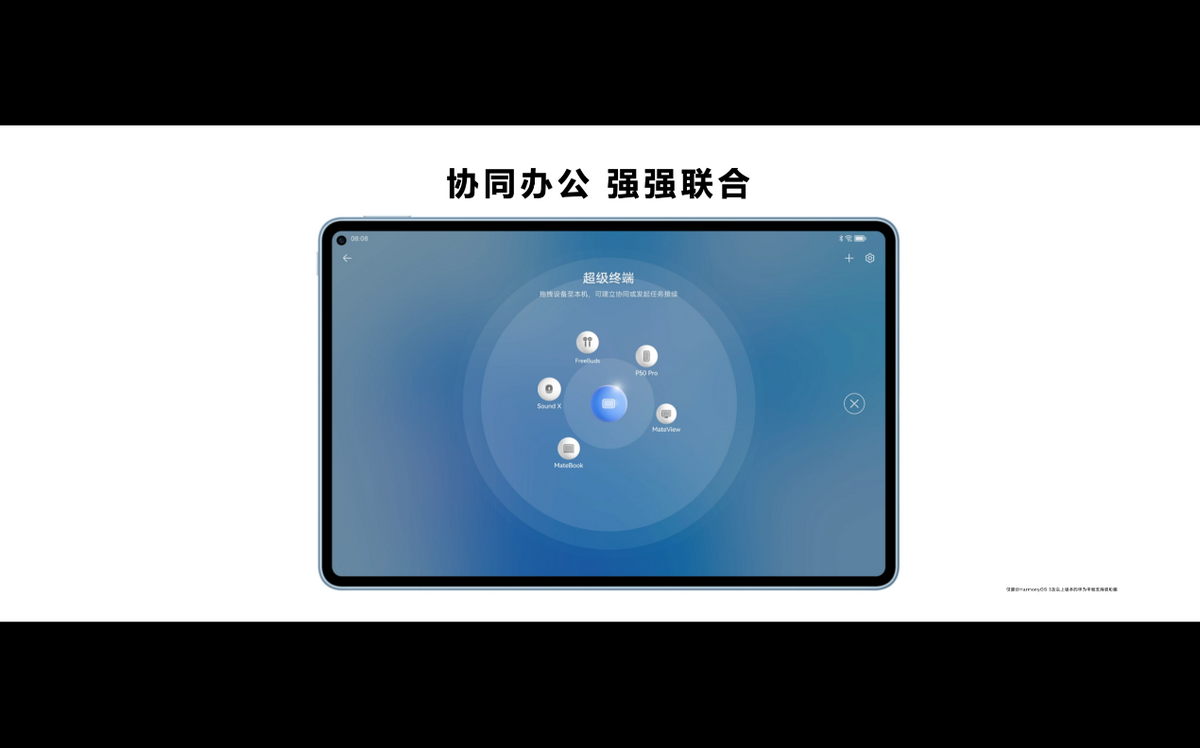 在HarmonyOS 2時,手機就可以和平板電腦協同組成一台超級設備,實現便捷辦公。在HarmonyOS 3的支持下,超級終端進行“全面擴容”,將更多設備、更多場景逐步整合進超級終端界面,實現操作的統一性。華為MatePad Pro可作為中心設備,與打印機、耳機、音箱、眼鏡、手錶等設備進行協同,感受更智慧的辦公體驗。