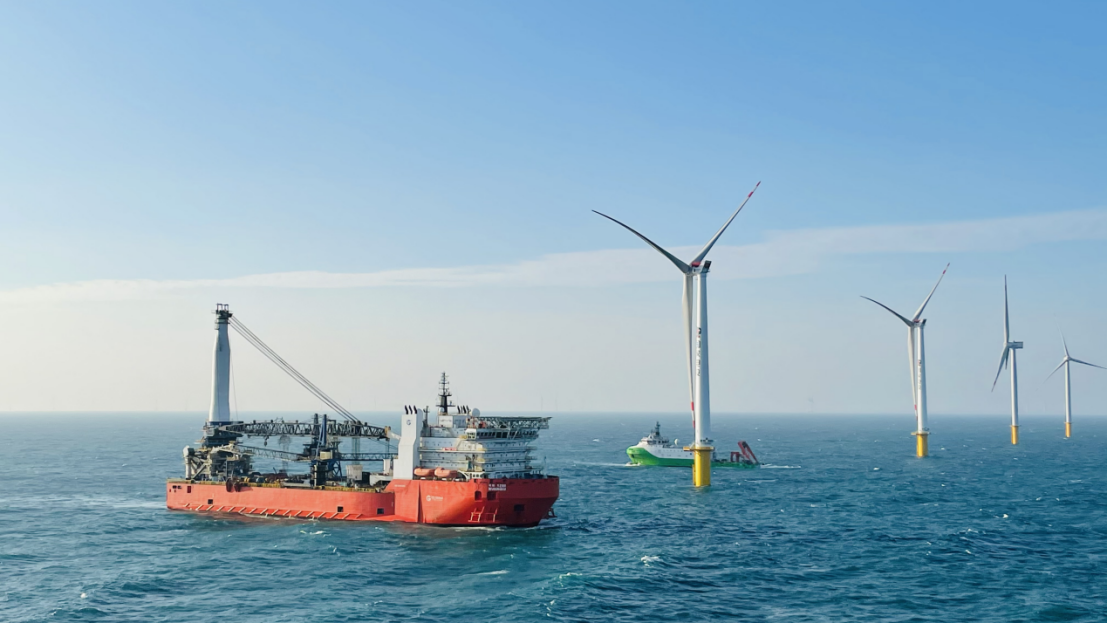 在廣東省揭陽市神泉鎮南面海域,國家電投揭陽神泉海上風電項目的53颱風電機組正隨風運作。這是目前亞洲最大的海上風電集控中心,在項目順利推進的背後離不開綠色金融的支持。