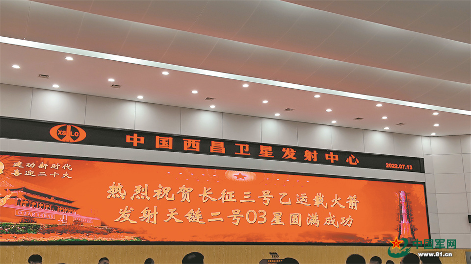 2022年7月13日,天鏈二號03星發射任務圓滿成功,西昌衞星發射中心指揮大廳亮起大紅屏。胡煦劼 攝