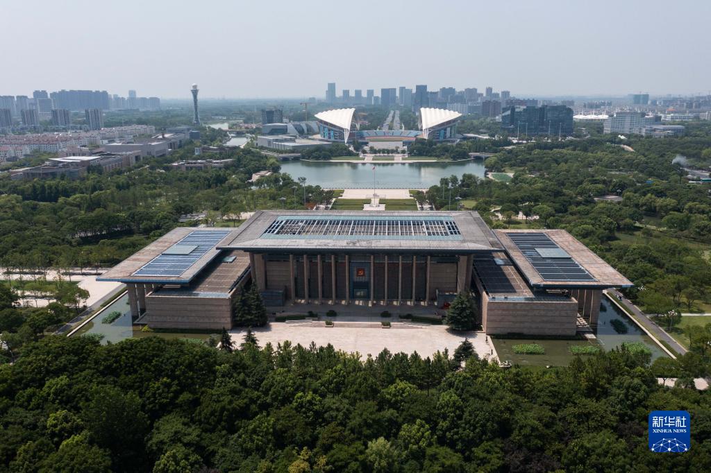 空中俯瞰嘉興市南湖旅遊區的南湖革命紀念館(7月27日攝,無人機照片)。