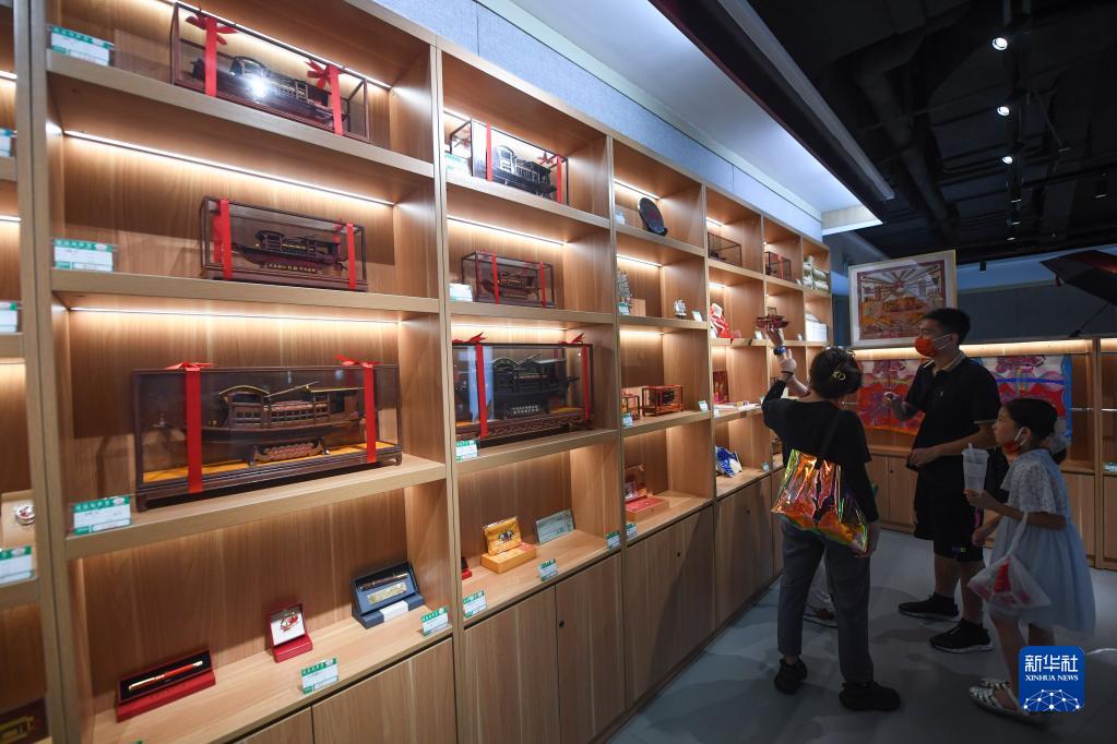 7月27日,遊客在嘉興市南湖旅遊區的紀念品商店購買旅遊紀念品。