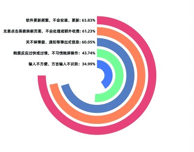 “智能手機什麼都好,就是很多功能弄不明白”“使用26鍵輸入法時,我手指頭粗,經常一按按倆”“網頁中突然彈出來的按鈕你都不能隨便點,點了之後它不就得問你要錢嗎?”“一不小心就會點到廣告,還不好關”……