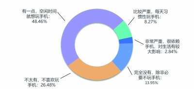 在討論互聯網的適老化時,很少有人注意到老年羣體也面臨着“成癮”危局。從問卷結果來看,有59.57%的老年人有網絡成癮的趨勢,其中,“非常嚴重,很依賴手機,對生活有較大影響” 的佔2.84%,“比較嚴重,每天習慣性玩手機”的佔8.27%,“有一點,空閒時間就想玩手機”的佔48.46%。幾位受訪老人均表示對手機形成了依賴,有老人反映頻繁使用手機影響眼睛、脊椎的健康等。很多老年人在智能手機的“聽書”“看新聞”“短視頻”等互聯網功能中再次找到了自己的興趣點,但由於相關健康知識科普不足,社會關注不夠,一些老年人深陷“成癮”泥潭。