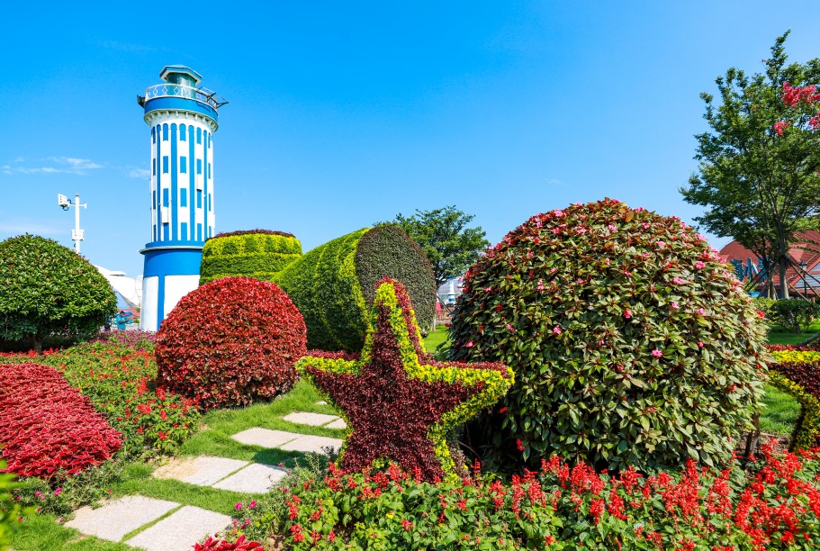 位於星光大道東側,以五彩時令花卉為基底,運用樂隊、舞者造型綠雕,呈現激情共舞、盡情狂歡的熱烈氛圍。