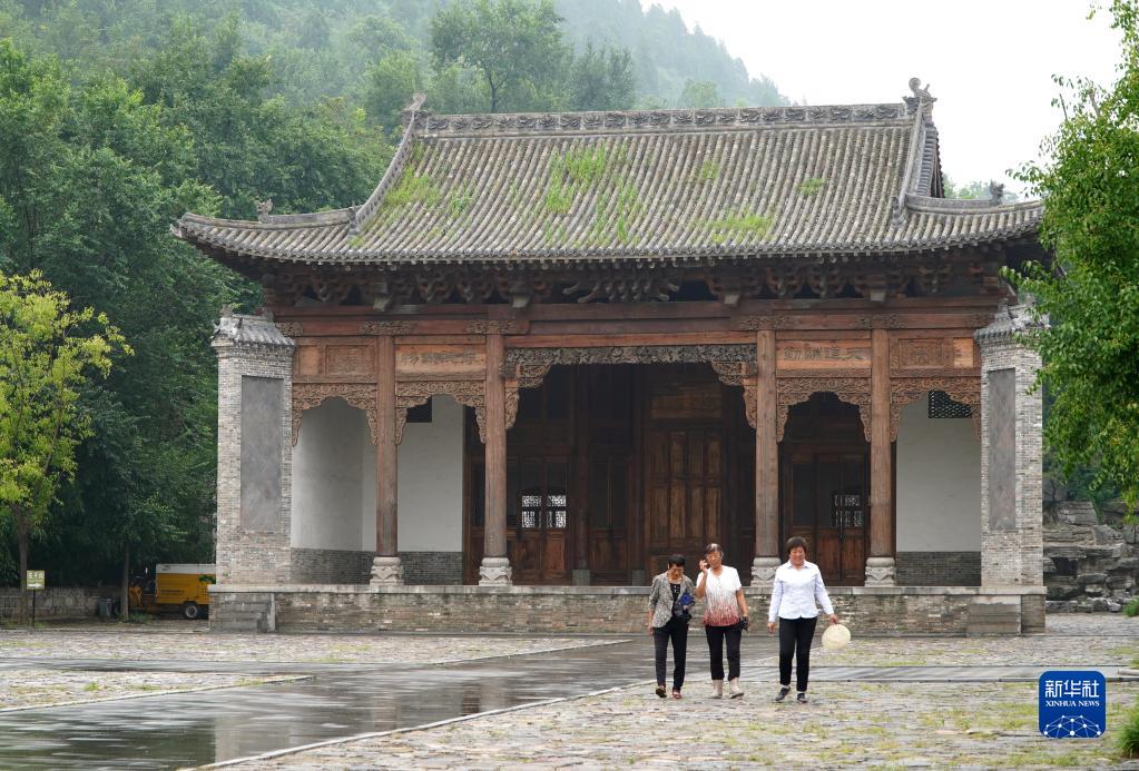 7月28日,村民在朱家峪村的歷史建築前行走。