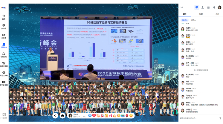7月28日,2022全球數字經濟大會在國家會議中心拉開帷幕,本屆大會聚焦“啓航數字文明——新要素、新規則、新格局”主題,首次開設元宇宙主題會場(gdec.n.cn),通過數字孿生手段復刻線下場景,支撐千萬數量級觀眾線上同步參與。新一代聚會元宇宙平台—N世界作為大會官方指定唯一元宇宙合做夥伴,以前沿數字技術助力大會打造線上線下虛實聯動的新一代參會體驗。