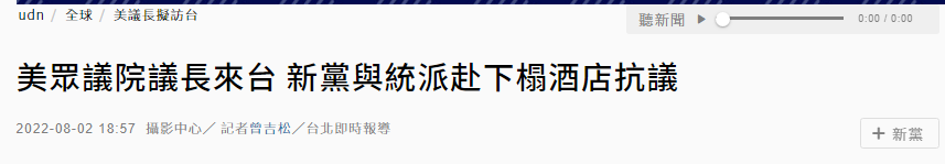 台灣中時新聞網稍早前報道,雖然目前台當局未證實“佩洛西訪台”的消息,但台灣新黨主席吳成典2日就表示,新黨堅決反對佩洛西來台,他認為佩洛西來會讓台灣陷入水火,吳成典也呼籲台灣民眾在今晚6時到君悦飯店抗議。他表示,台灣已經陷入水火,台灣人不能讓美國玩弄在股掌之間,要覺醒。他呼籲大家思考,我們有能力挑起兩岸的戰火嗎?我們願意這樣子做嗎?台灣人民同意佩洛西來台嗎?他最後説,新黨雖然聲音薄弱,但要把想法表達出來。