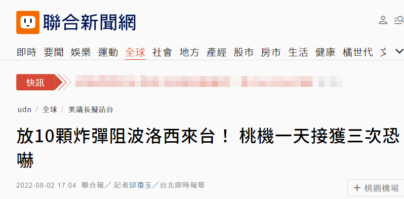 【環球網報道】台灣《聯合報》消息,美國聯邦眾議院議長佩洛西預計今日(2日)晚間10時左右抵達台灣松山機場。報道稱,桃園機場公司網站的客服信箱今天一整天接連收到3封恐嚇信,且最後一封信件提到“在機場放置10顆炸彈,要求9點前每個人都要下班”。