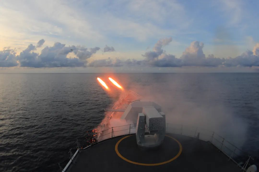 連日來,南海某海域,雲捲雲舒,暗流湧動,南部戰區海軍某護衞艦支隊組織艦艇編隊,連續進行實射干擾彈、單艦主炮副炮連續對海攻擊、實射火箭深彈等課目訓練,有效錘鍊複雜威脅條件下,編隊協同作戰能力。