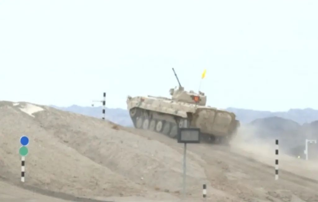 14日,在“蘇沃洛夫突擊”單車賽首輪賽中,中國車組在5個國家參賽隊共派出的6個步戰車組中,摘得桂冠。