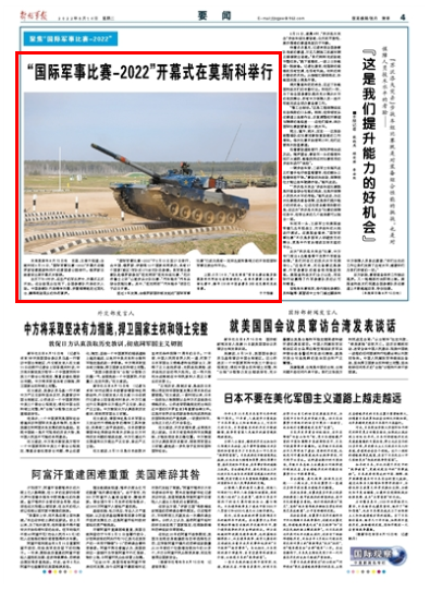 “國際軍事比賽-2022”於8月13日至27日舉行,由中國、俄羅斯、伊朗等12個國家共同承辦,共有37個國家(地區)軍隊的270餘支隊伍參賽。我軍派出參賽隊赴俄羅斯參加“坦克兩項”坦克車組比賽、“厄爾布魯士之環”山地步兵分隊比賽、“汽車能手”汽車兵綜合技能比賽。其中,“坦克兩項”“汽車能手”項目已於近日開賽。