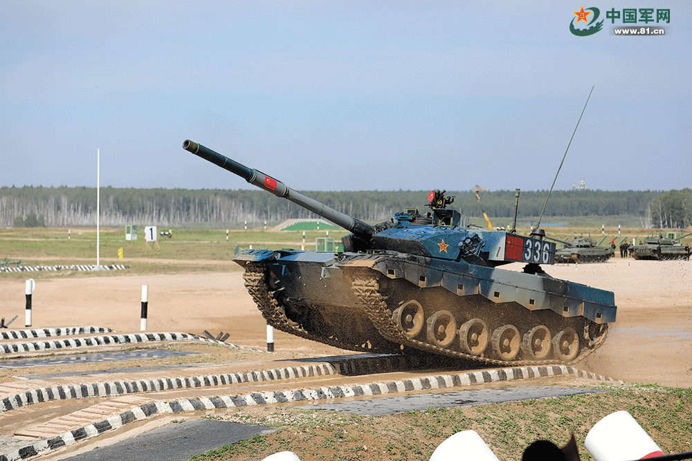8月14日,“坦克兩項”項目比賽在俄羅斯莫斯科州阿拉比諾靶場進行。在單車賽第三組第一場比賽中,編號336的中國參賽隊96B坦克順利完成首賽。於子恆攝