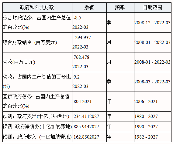 2021年12月,加納政府債務佔該國名義國內生產總值的80.1%,而上一年為76.1%,詳見下表。