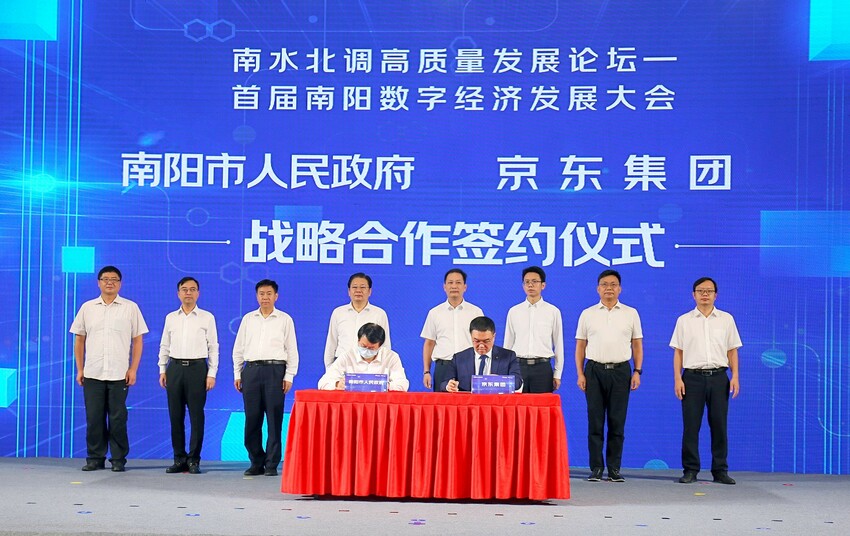 8月16日,由南陽市人民政府和京東集團聯合主辦的南水北調高質量發展論壇暨首屆南陽數字經濟發展大會(京東雲城市峯會南陽站)在歷史名城河南省南陽市召開,會上南陽市政府與京東集團正式簽訂戰略合作協議,相關院士、行業專家、學者以“數實融合,產業煥新”為主題共商共議南陽市數字經濟發展大計、共謀數字經濟領域新發展,助力南陽加速駛入數字經濟快車道。