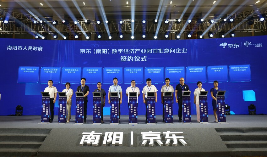 此次大會上,南陽市政府與京東集團正式簽署戰略合作協議,南陽市相關政府部門、企業同京東集團各業務板塊同步推動開展相關領域的務實合作。京東集團將南陽作為市場開拓的重點區域進行佈局,雙方將在商貿流通、現代物流、數字經濟、智慧城市等領域,開展全方位、多層次、寬領域的深度合作。同時,宛城區人民政府和京東科技集團將作為雙方合作的“排頭兵”,以“將南陽打造成為輻射豫鄂陝三省的區域數字經濟樞紐城市”為目標,合作共建“一園三中心”,即:共建京宛合作京東數字經濟產業園,共同打造區域產業集聚中心、區域產業技術賦能中心、區域人才培訓中心。