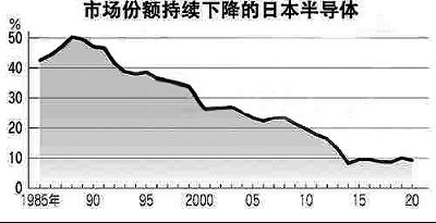 按照日本經濟產業省最新的統計,1988年佔世界半導體市場50.3%份額的日本,到了2019年僅剩下10%。而這10%也做得相當艱難,利潤很低。上世紀80年代世界半導體十強企業中,日本佔一半,但到了2019年,僅有東芝一家名列第九。而東芝經營嚴重虧損,最終出售了自己的半導體業務。