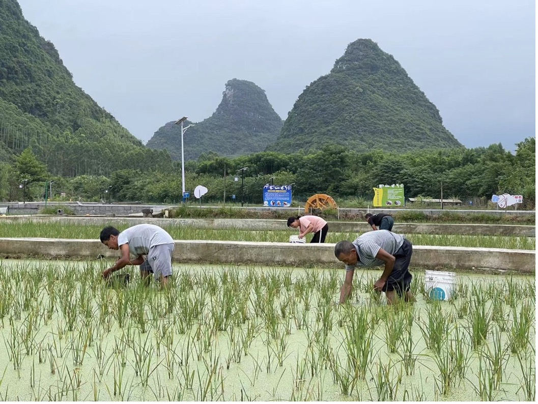 螺螄粉火爆全網後,組成螺螄粉的各色農貨產業隨即水漲船高,成為推動柳州產業振興、鄉村振興的巨大引擎。柳江區螺螄良種繁育和養殖試驗基地落户在木祥屯後,韋義便當起“螺螄飼養員”。負責運營該基地的柳州市谷之韻農業發展有限公司總經理蘭健勇介紹,在“公司+合作社+農户”模式下,村民養殖螺螄可以拿到產業補貼,螺螄養大後有合作社保底收購,不必擔心滯銷。
