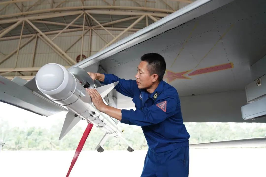 ▲機務人員起飛前複查導彈掛載情況
