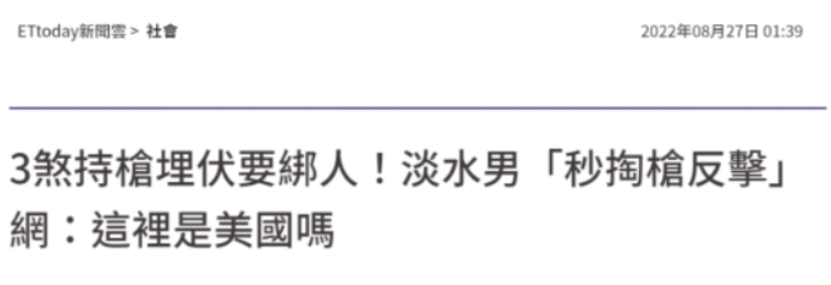 報道稱,消息經媒體報道後,有人問:“這裏是美國嗎?”“難道只有我沒槍?”“為什麼人人有槍,就我沒有?”還有網友説:“最近也發生太多社會事件了吧。”也有人問:“台灣治安究竟怎麼了?”