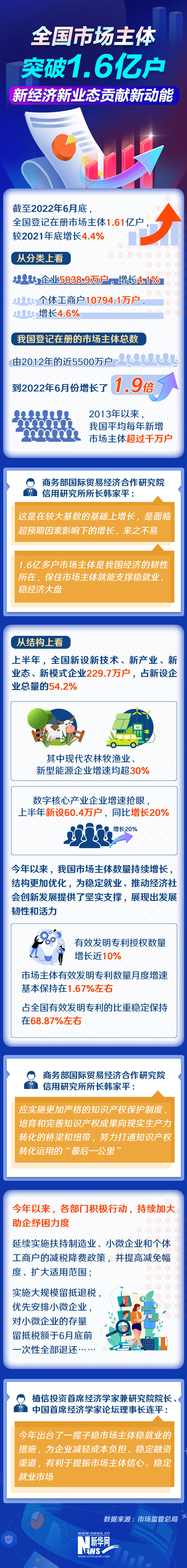 億户市場主體是經濟發展的活力所在。數據顯示,我國市場主體已突破1.6億户。穩住市場主體,是促進宏觀經濟發展的強大動能。