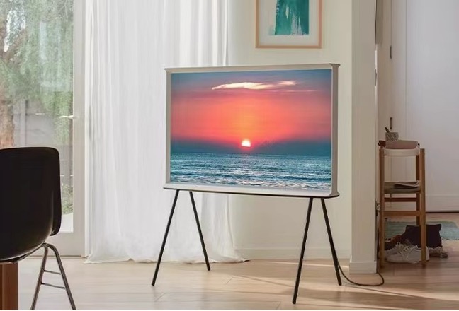 針對The Frame和The Serif系列,產品採用啞光屏顯,可通過浮雕塗層將表面的光線漫反射到不同的角度以減少環境光反射。這一項升級對The Frame電視意義更為重大,因為The Frame的設計靈感就來源於置掛牆面的一幅畫,而啞光屏顯技術則可以為人們還原和呈現出更逼真的畫布質感。