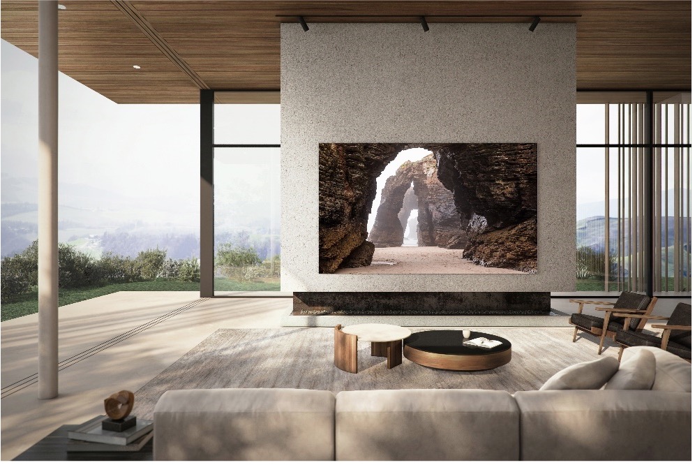此次發佈的Micro LED產品,屏佔比高達99.99%,大幅弱化了視覺邊界感,讓內容、屏幕與牆壁高度融為一體。據介紹,三星Micro LED屏幕在藍寶石晶石片上製作而成,配合LED無機自發光技術,讓新品在使用壽命、效率、速度、可信賴性等方面更具優勢。