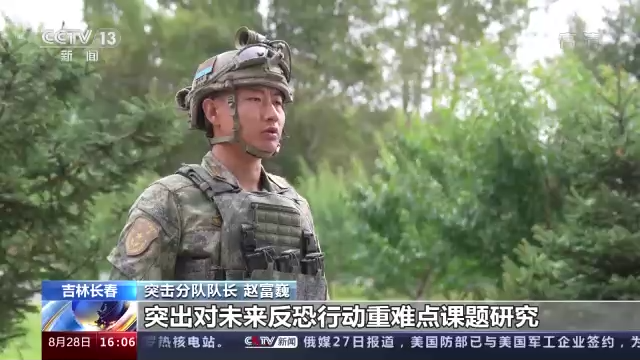 *突擊分隊隊長 趙富巍:*此次演練,突出對未來反恐行動重難點課題研究,發揮空地協同作戰優長。我們通過對機降、接敵、突入、營救、阻敵、撤離等內容的演示,展現了部隊前期訓練成果。