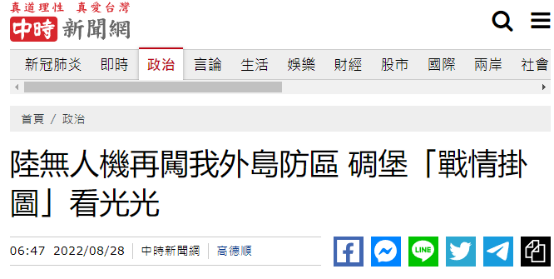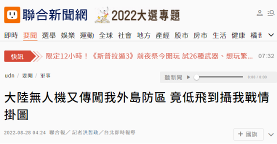 “疑似大陸無人機進入小金門台軍據點拍攝”,島內媒體關注
