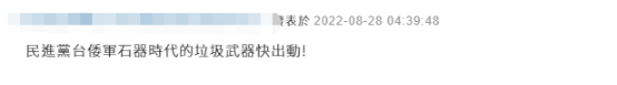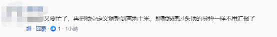 也有網友諷刺稱,“民進黨台倭軍石器時代的垃圾武器快出動!”“防務部門又要忙了,再把領空定義調整到離地十米,那就跟掠過頭頂的導彈一樣不用匯報了。” ↓