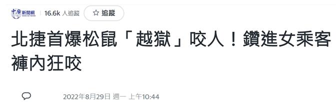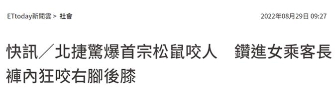台媒:台北地鐵現首例松鼠傷人案,寵物松鼠鑽進女乘客長褲內“狂咬”