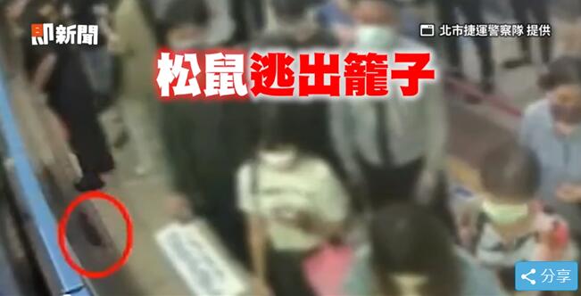 據ETtoday新聞雲報道,台北市警局捷運警察隊29日發佈新聞稿稱,16日當天,台北捷運警察隊第三分隊警員陳信君、榮聯慶巡邏時,接到通報稱忠孝新生站有旅客需要協助,2人趕到現場調閲監控後發現,一名女乘客在站台候車時,突然被一隻松鼠爬上身並咬傷右腳後膝處,該乘客趕緊向站務人員求助,當時由於站內人多擁擠,許多人受到驚嚇,並引發騷動。