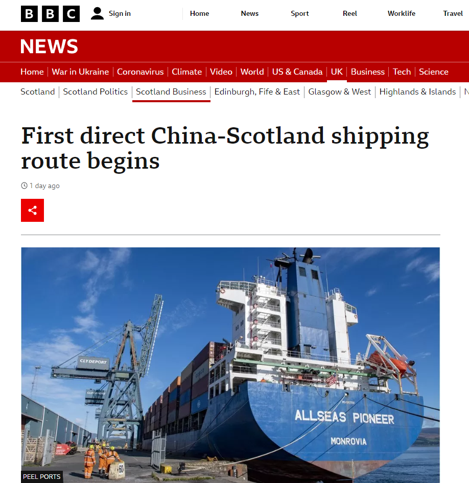 事實上,儘管英國對華政治氛圍進入“急凍期”,但兩國貿易關係仍然保持了温度。即便在疫情期間,來自中國的高性價比商品支持了英國抗疫,也幫助英國抑制物價上漲壓力,而來自英國的產品則有助於滿足中國消費市場的多元需求。數據顯示,2021年,中英雙邊貨物貿易額首次突破1100億美元。這既是逆勢而行,又是順勢生長,逆的是英國鼓動對華“脱鈎”的政治逆流,順的是中英加強經貿人文合作的大勢。在這個意義上,蘇格蘭和中國的新航線,不僅體現着合作共贏的精神,也包含着實事求是的勇氣。