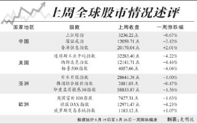 周全球主要市場股指除香港恒生指數外普遍下跌,其中歐洲地區受俄烏衝突加劇影響跌幅最大。