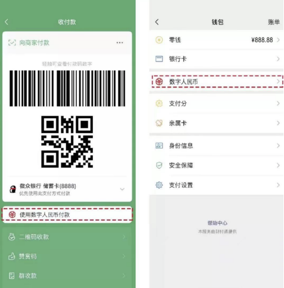 今年1月,數字人民幣(試點版)APP在各大安卓應用商店和蘋果APPStore上架,騰訊旗下微眾銀行開始支持數字人民幣賬户開通,並支持通過數字人民幣APP進行支付結算。4月初,隨着第三批人民幣試點地區公佈,我國共計23個地區的用户可以使用數字人民幣。擁有廣泛用户的微信支付也同步開始在全部已落地試點地區支持數字人民幣支付。用户在數字人民幣應用內開通微眾銀行錢包並進行實名認證,保持開通錢包手機號與微信一致,實名信息與微信支付保持一致,就會在微信“錢包“、”支付掃碼”頁面看到非常顯著的數字人民幣入口。
