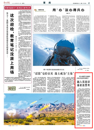 融入實戰訓,晝夜連貫考,有效提升了該旅後裝分隊綜合作戰能力,錘鍊了官兵的心理素質。前不久,在集團軍組織的基礎戰鬥單元考核中,該分隊官兵合格率、優良率較以往均有明顯提升。