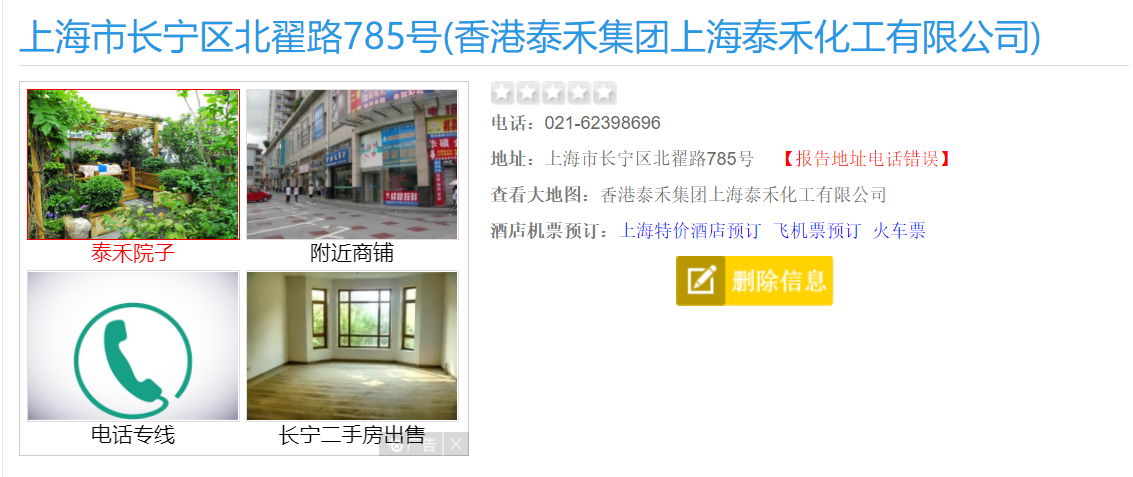 另據公開信息顯示,泰禾股份的董事長田曉宏還註冊並經營着“上海泰伯生物化工有限公司”,從事製冷劑、發泡劑、氟化工中間體等產品的經營,而且該公司的經營地址是在“上海市長寧區北翟路785號北翟路785號”,這一地址也被備註為“香港泰禾集團上海泰禾化工有限公司”。